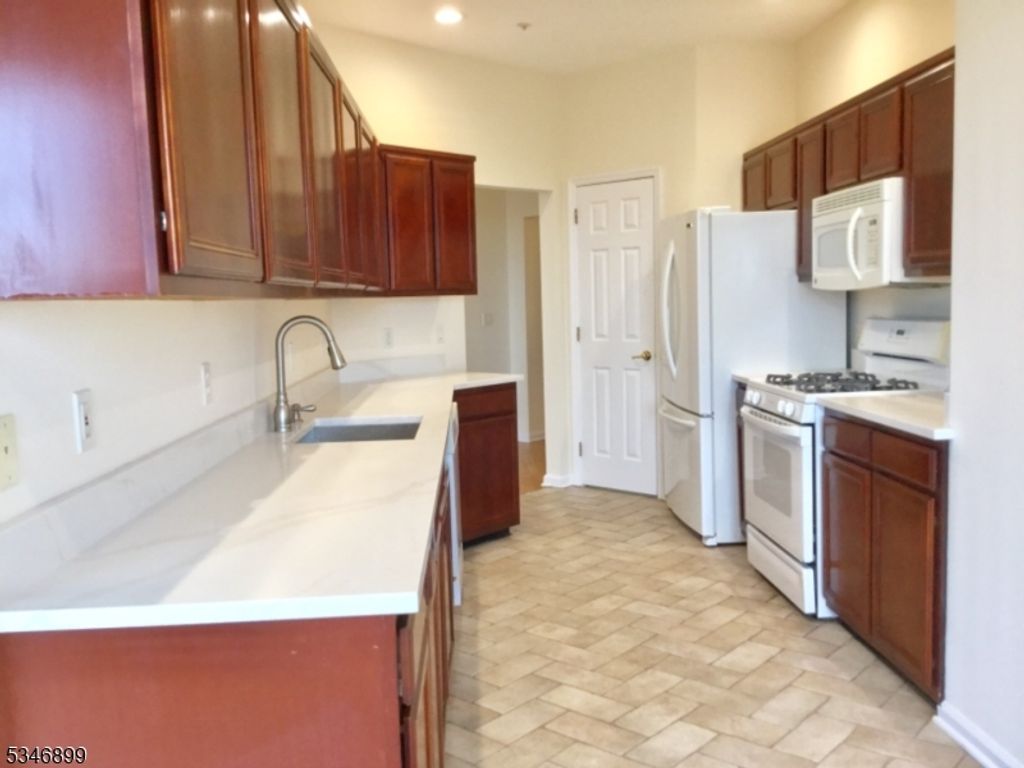 Expect to be impressed the moment you step into this move-in-ready Windsor end unit in the desirable 55+active adult community of Fox Hills. This spacious 2 Br, 2Ba w/den unit features newly finished hardwood floors, ceramic tile in the foyer, kitchen & baths, and an open, airy layout perfect for easy 1-floor living. The bright and modern kitchen boasts quartz countertops, a separate eating area, and plenty of prep space. The generously sized primary suite features 2 walk-in closets w/ organizers, a jetted soaking tub, & a stall shower. Private 2nd Br w/walk in closet. The living/dining rm is highlighted by recessed lighting, a built-in wall unit w/ a gas fireplace, sliders that open to a private covered porch w/scenic views. Additional conveniences include a laundry rm w/ full-size side-by-side washer and dryer. This unit comes w/2 assigned underground parking spaces & 2 storage bins, all accessible via elevator in the secure parking garage. 24 Hr manned guard-gated. Residents enjoy resort-style amenities, including a 26,000 sq. ft. clubhouse, indoor & outdoor pools, pickleball & tennis courts, a bocce ball court, a community garden & greenhouse, a billiard room, library, and gym, plus many clubs and social activities. Prime location near major highways, shopping, restaurants, and healthcare facilities. Don't miss this incredible opportunity to live in one of Rockaway's most sought-after active adult communities! Free jitney bus to Shop Rite, Costco, movie theater, etc.