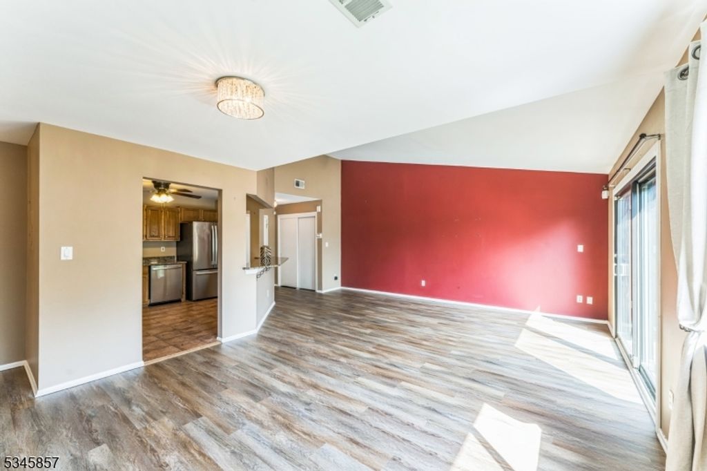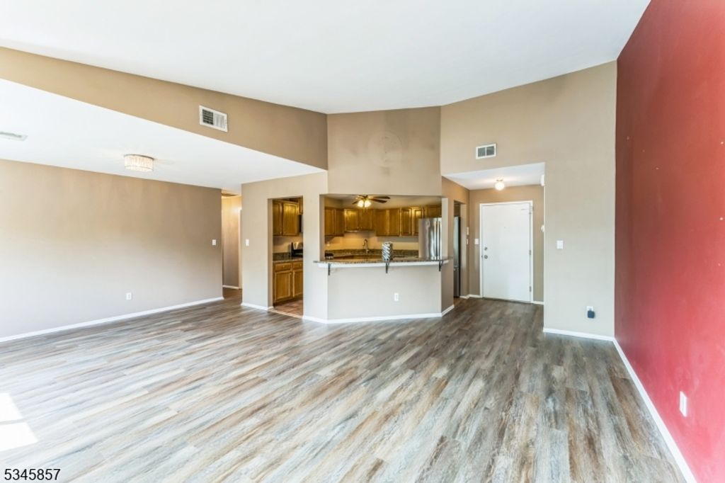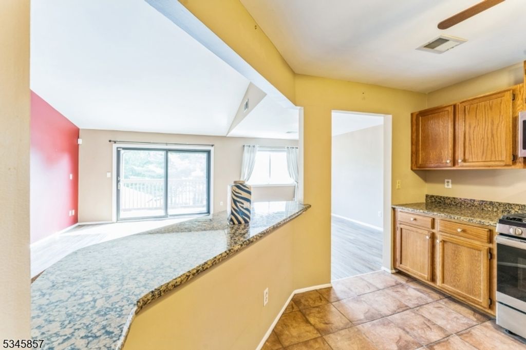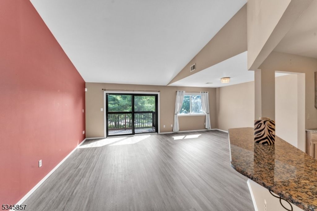 True 2 Bedroom immaculate updated 2nd floor unit with an open concept floorplan made for entertaining. Beautiful new flooring just installed. Gourmet kitchen with a granite breakfast bar and counter tops, stainless steel appliances and ample counter space and cabinetry. Light and bright throughout with a water view. The Living Room has a vaulted ceiling to enhance the airy open feel and sliders to the deck to enjoy the view. Laminate wood flooring in the Living Room and Dining Room. The freshly painted Primary bedroom offers a walk in closet, 2nd closet and private bath. All done in neutral colors. Ready to move in and be at home. The private garage has an interior entrance for added convenience and safety. Enjoy the community pool and tennis courts and let someone else take care of the yardwork and snow removal. Convenient location near shopping and restaurants. Easy access to Routes 10, 46, and 80.
